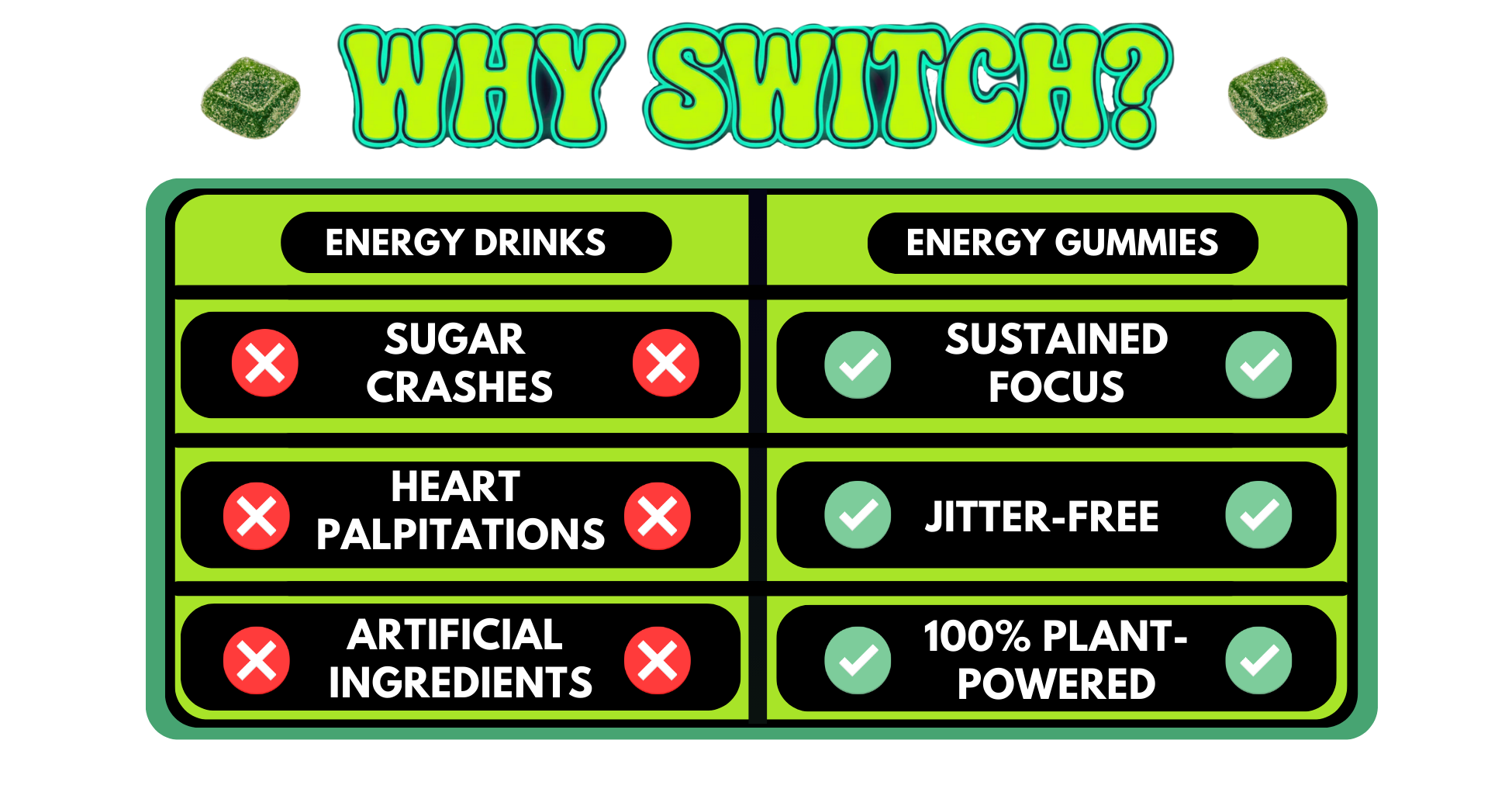"I really enjoy the flavor of these gummies, and I’ve totally stopped reaching for energy drinks!! I love that they’re made with all-natural ingredients, and the caffeine gives me a super smooth, steady boost with no jitters or crash. I feel noticeably sharper and more focused. I love them!!"